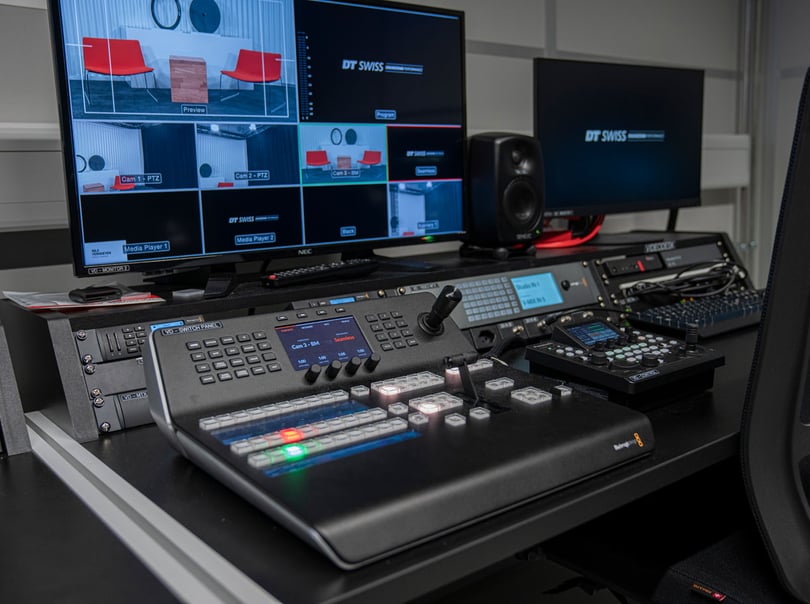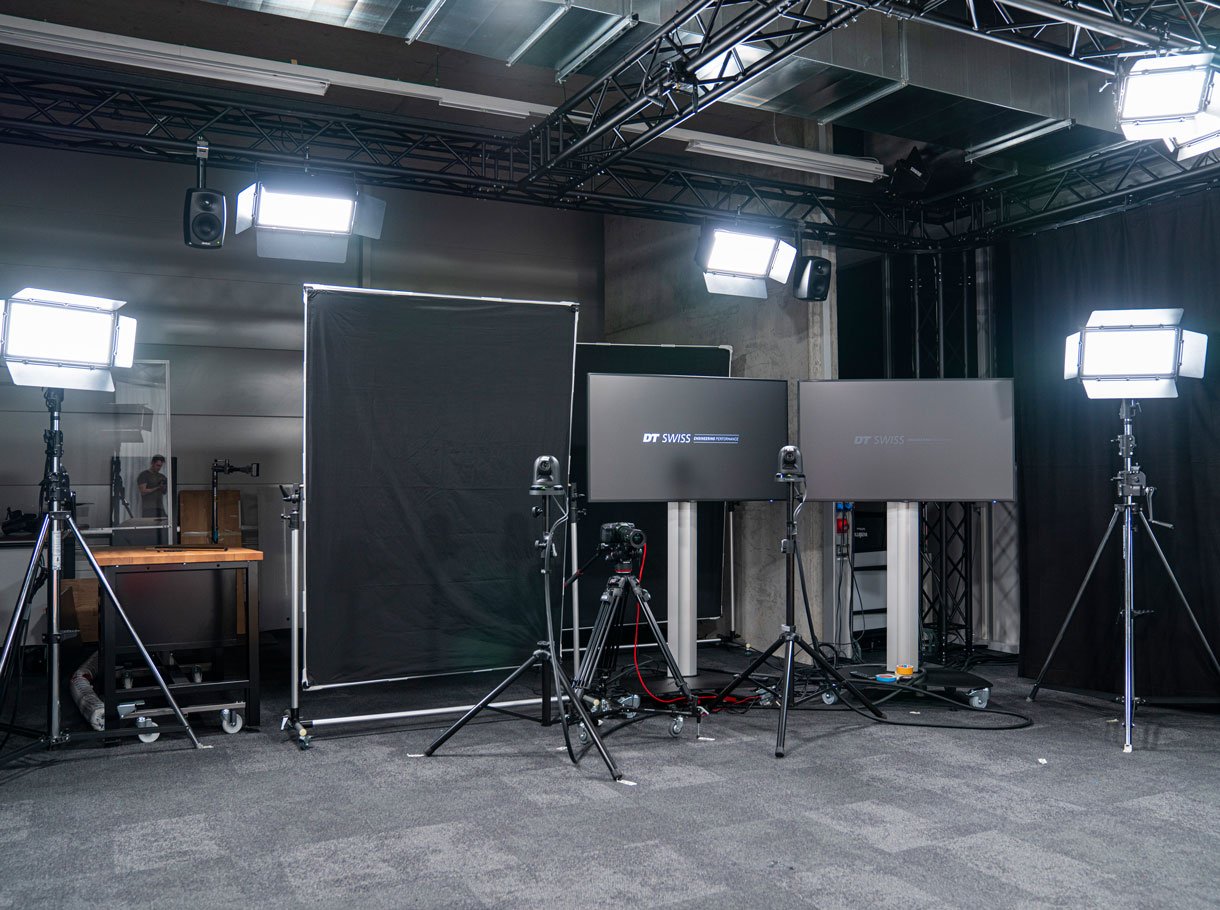 Dank einer bestehenden Zusammenarbeit, wurde der Auftrag für den Studiobau und die Erneuerung der AV-Technik auf die neusten Standards bei DT Swiss, an uns vergeben.