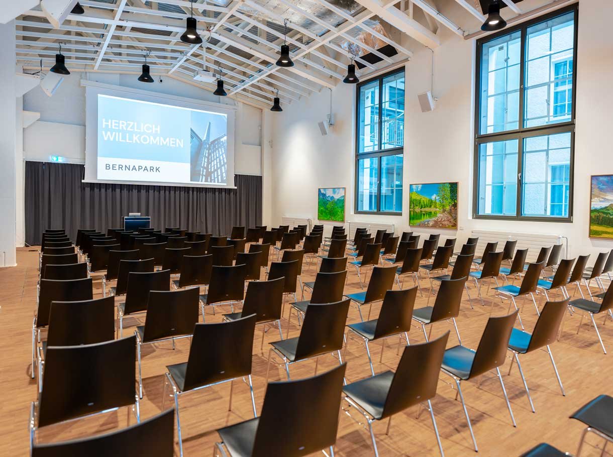 Im Osten von Bern, auf dem Areal der ehemaligen Kartonfabrik Deisswil, ist mit dem Bernapark ein lebendiges, zukunftsorientiertes Quartier entstanden. Hier vereinen sich Wohnen, Arbeiten, Freizeit und Kultur auf moderne Weise. Neben Co-Working-Spaces, Wohnungen und Fitnessangeboten beherbergt der Bernapark auch repräsentative Veranstaltungsräume, die flexibel für private oder geschäftliche Events gemietet werden können – darunter die neu ausgebaute Eventhalle mit zugehörigem Foyer und der stilvollen BEKB Lounge.