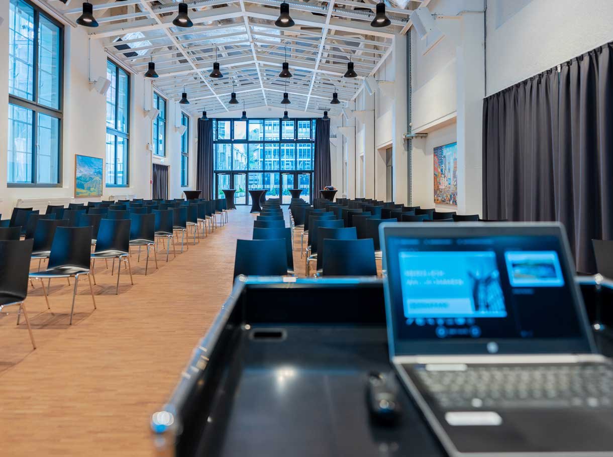 Im Rahmen des Umbaus der historischen Industriehallen entstand eine multifunktionale Eventlocation für bis zu 300 Personen. Die Kilchenmann AG wurde mit der Planung und Umsetzung der kompletten AV-Technik beauftragt – eine Entscheidung, die auf eine langjährige und vertrauensvolle Partnerschaft zurückgeht. Ziel war es, eine flexible, einfach bedienbare und hochwertig ausgestattete Anlage zu schaffen, die unterschiedlichsten Veranstaltungsformaten gerecht wird – von Workshops über Produktpräsentationen bis hin zu Gala-Events.