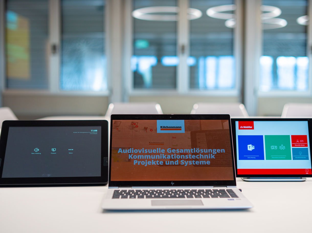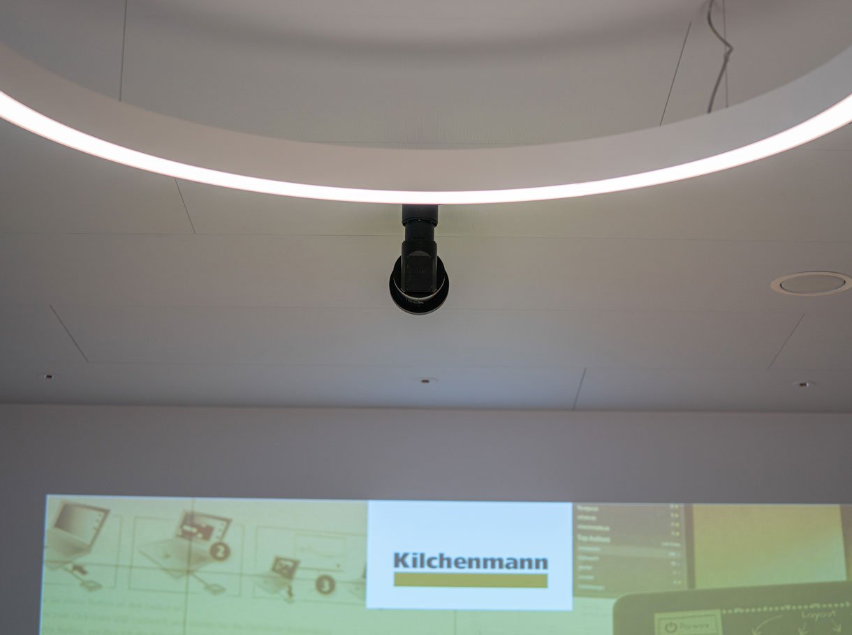 Die Herausforderung in diesem Projekt waren die Anforderungen des Architekten. Der Beamer durfte nicht sichtbar sein und wurde daher in die gekühlte Decke integriert, sodass nur das Objektiv aus der der Decke ragte. Die Lautsprecher und Mikrofone wurden ebenfalls optisch sehr diskret und fast unsichtbar angebracht.