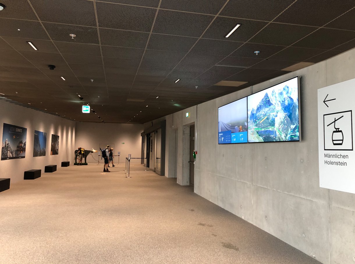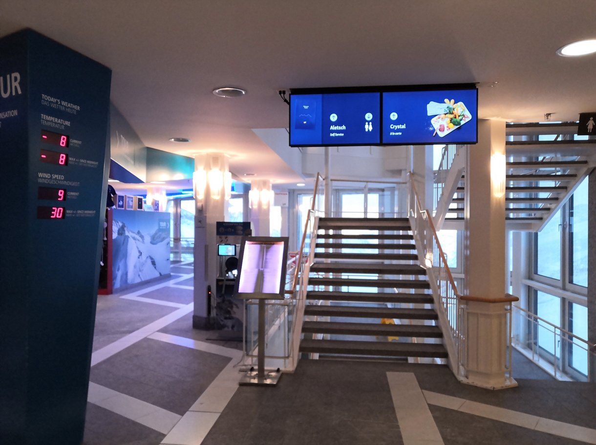 Die beiden 32 Zoll Displays für die Wegleitung und das zusätzliche Display im Restaurant Bollywood weisen den Gästen des Jungfraujochs auf moderne Art den Weg durch die Anlage auf 3454 M.ü.M. Dank Displays mit neuster Technik von Samsung, sowie dem integrierten Betriebssystem kommen die Displays ohne zusätzliche Ausspielhardware aus.