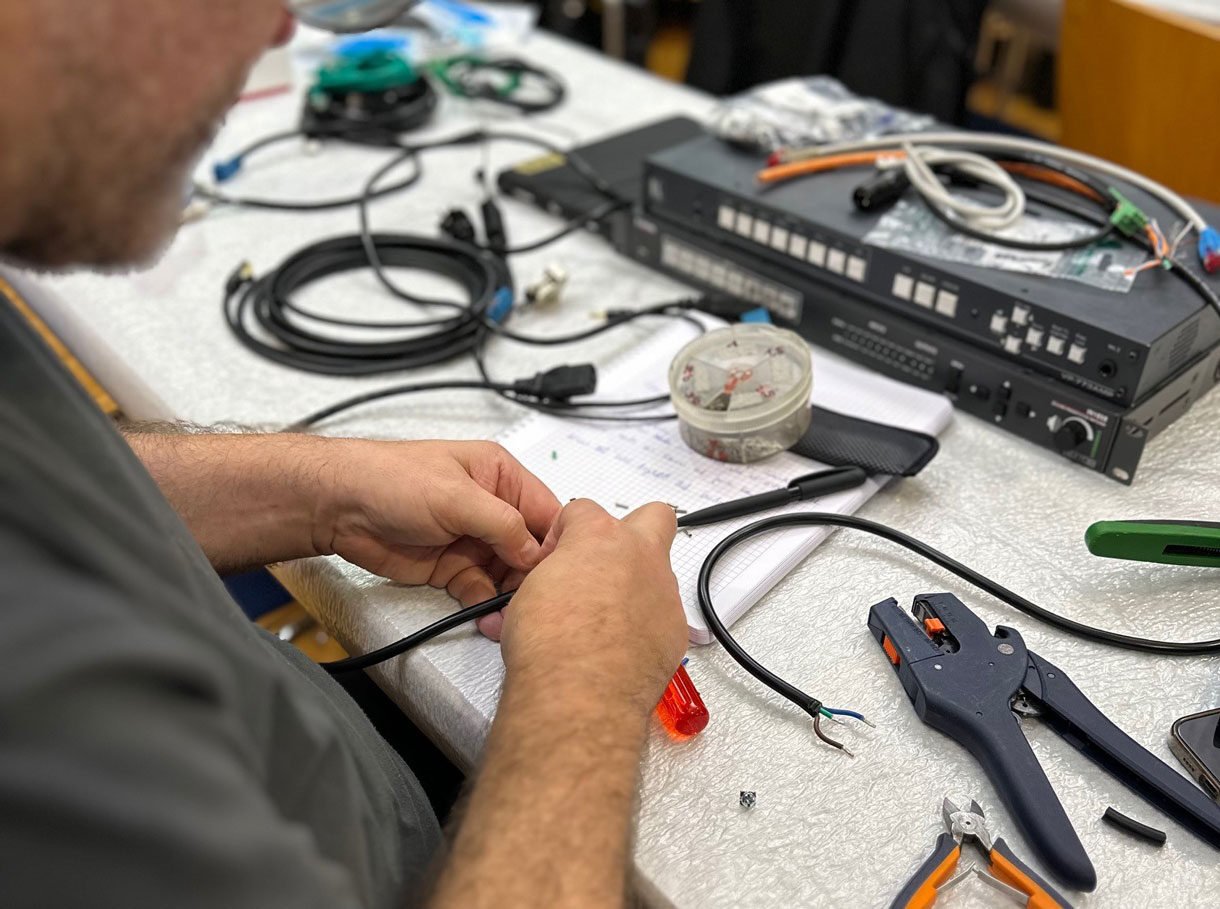 so konfiguriert, dass eine optimale Bild- und Audioausgabe erfolgt - Fertigungs- und Montagetechniken: Steckerkonfektionierung und Installationsgrundlagen werden praktisch erarbeitet.
