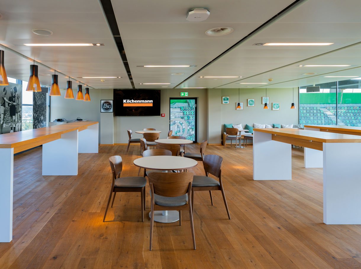 Auch die Kongressräume wurden auf den neusten Stand der Technik gebracht. Neben hochauflösender Videotechnik und breitbandiger Audioübertragungen ermöglichte Kilchenmann auch die zentrale Steuerung. Via Touchpanel wird die komplette Medientechnik bedient und umgeschaltet – sei es ein einzelner Bildschirm oder Presets, welche das ganze Stadion in verschiedene Betriebszustände schaltet. So können beispielsweise individuelle Preset-Einstellungen für «vor dem Spiel», die Pressekonferenz oder Raumvernetzungen bei Kongressanwendungen gespeichert und aufgerufen werden.