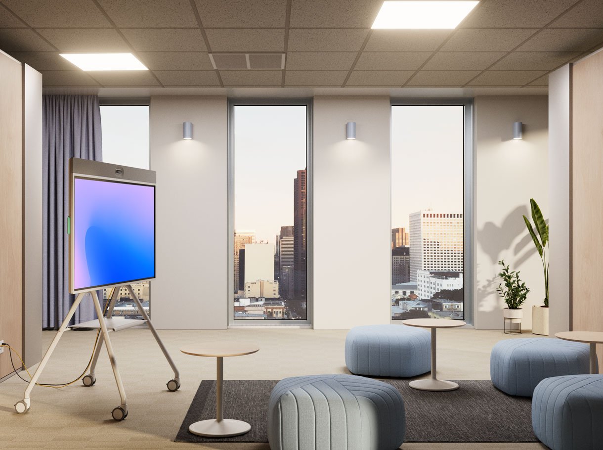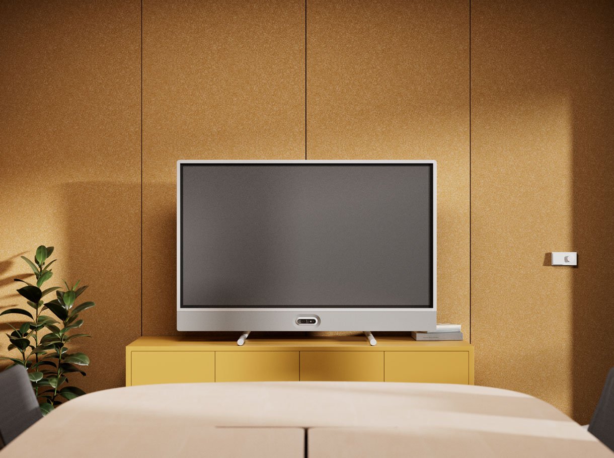 Was auf den ersten Blick wie ein eleganter 65-Zoll-Touchscreen wirkt, entpuppt sich als voll ausgestattetes Videokonferenzsystem: