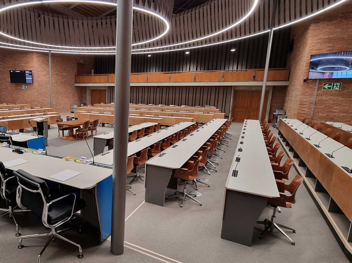 Die Mehrmandantenfähige-Abstimmungsanlage wird von Instanzen wie z.B. Kanton, Stadt, Gemeinde, Kirchen und dem Jugendparlament genutzt. Die Anlage kann aber auch für andere Gruppen als unpersönliche Diskussionsanlage eingesetzt werden. Der Nutzer startet seinen Mandanten via Touchpanel und parametrisiert somit die Gesamtanlage. Verschiedene Präsentationsanschlüsse sowie Drahtlosmikrofonie machen den Saal zu einem Multifunktionsraum bis hin zu einem Konzertsaal.