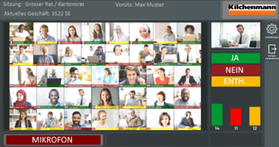 - Bei der Abstimmung werden die Resultate gesammelt, angezeigt und ausgewertet. Egal ob der Teilnehmer im Ratssaal oder zu Hause teilnimmt