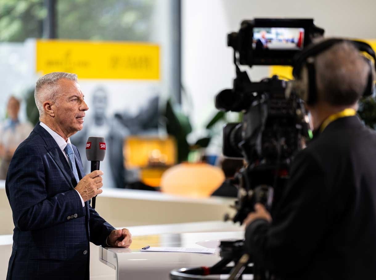 Rund 50 Medienvertreter waren vor Ort; Schweizer Radio und Fernsehen SRF haben den Anlass live auf ihren Kanälen übertragen.