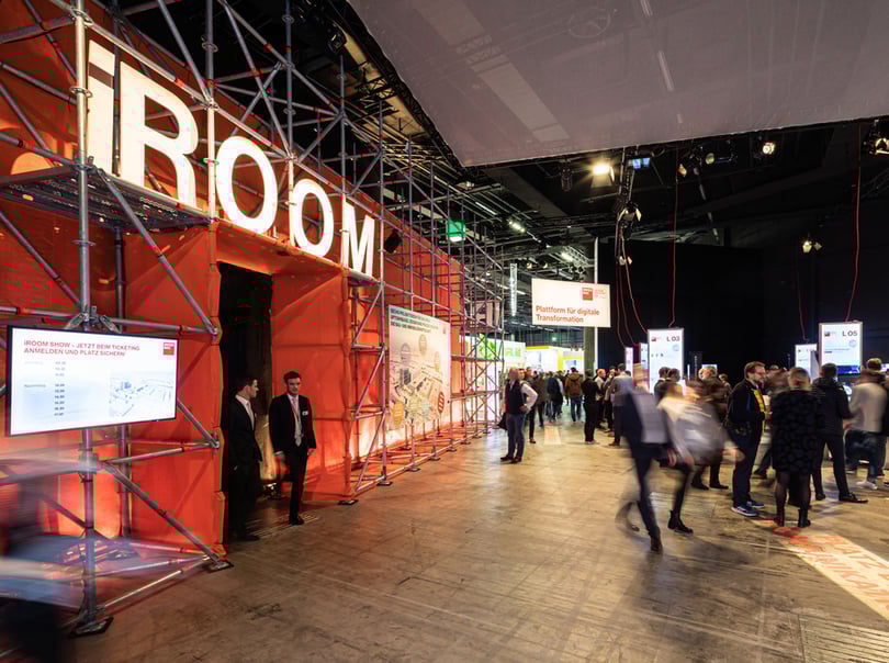Der iRoom ist ein Kino mit einer 270°-LED Wall, wo die Ideen der Partner zum Leben erweckt werden. Die Besucherinnen und Besucher erleben hier die Digitalisierung der Baubranche live vor Ort und tauchen ein in die Welt von morgen.
